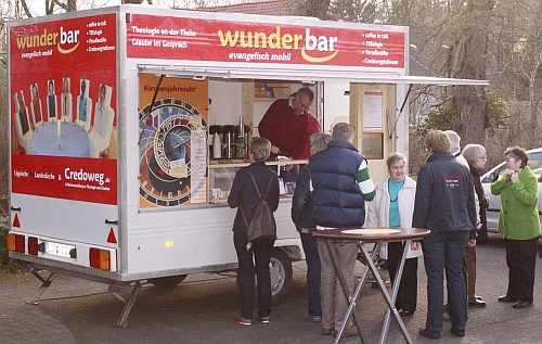 Die wunderbar ist ein mobiler Informations- und Gesprächsstand, der insbesondere als Getränkestand konzipiert ist. Gemeinden und kirchliche Einrichtungen können sich und ihre Arbeit gastlich präsentieren.